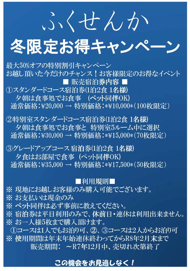 【お知らせ】ご宿泊者様限定!冬のお得なキャンペーン♪